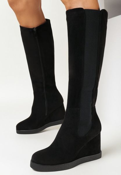 Czarne Kozaki na Koturnie z Elastyczną Wstawką Quixotic
