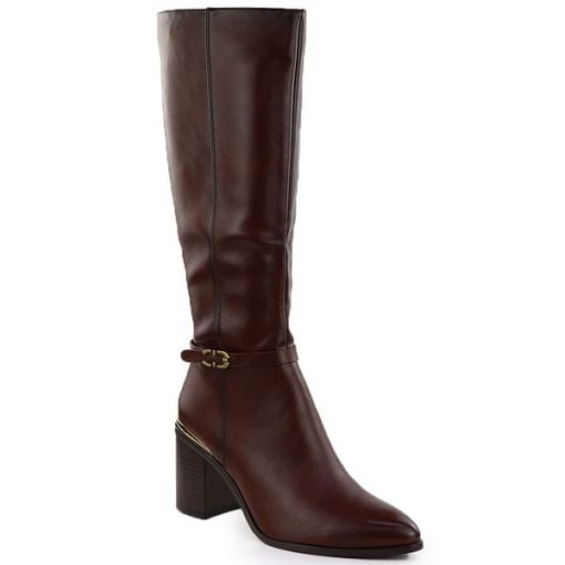 Kozaki damskie na słupku ocieplane brązowe Sergio Leone 25738