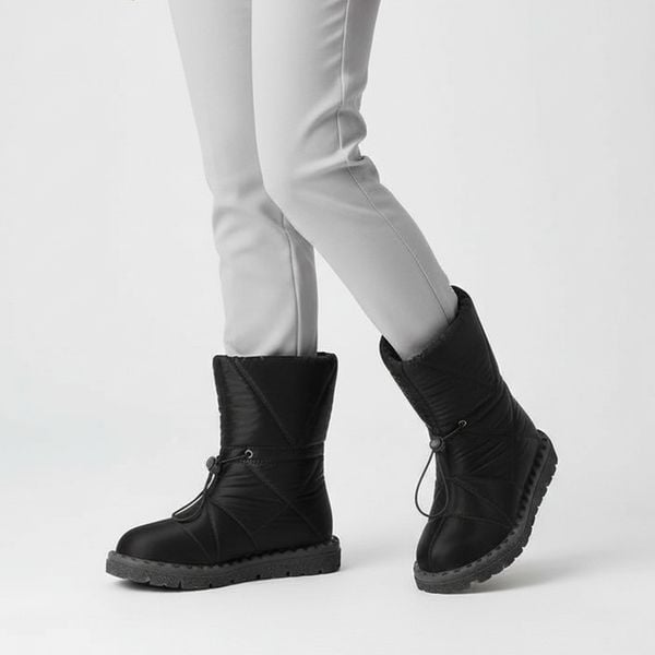 Śniegowce damskie Artiker, cholewka z pikowanego materiału z ociepleniem i regulacją na troczek gruba podeszwa z wyraźnym profilem, czarne, 51C0361