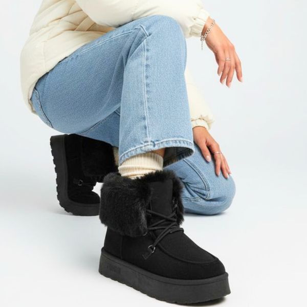Śniegowce damskie Big Star, na wysokiej platformie z futerkiem i okrągłym noskiem, czarne, SS274113