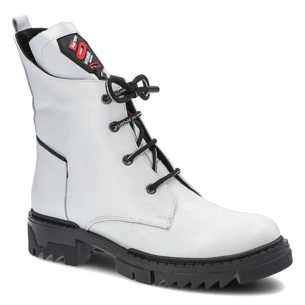 Botki damskie Artiker, sportowe skórzane na grubej platformie z wysoką cholewką i sznurowanym zapięciem, białe, 47C0527