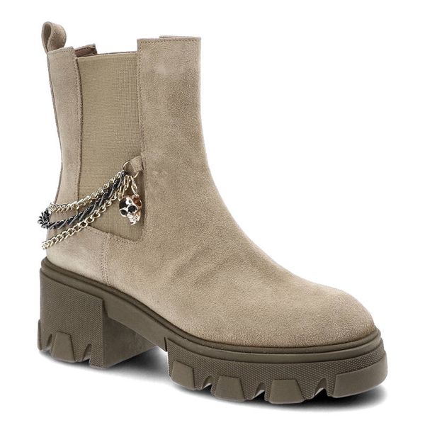 Botki damskie Carinii, naturalna skóra zamszowa masywna podeszwa z wyraźnym bieżnikiem ozdobny łańcuch, bez, B8483_-O17-000-000-F56