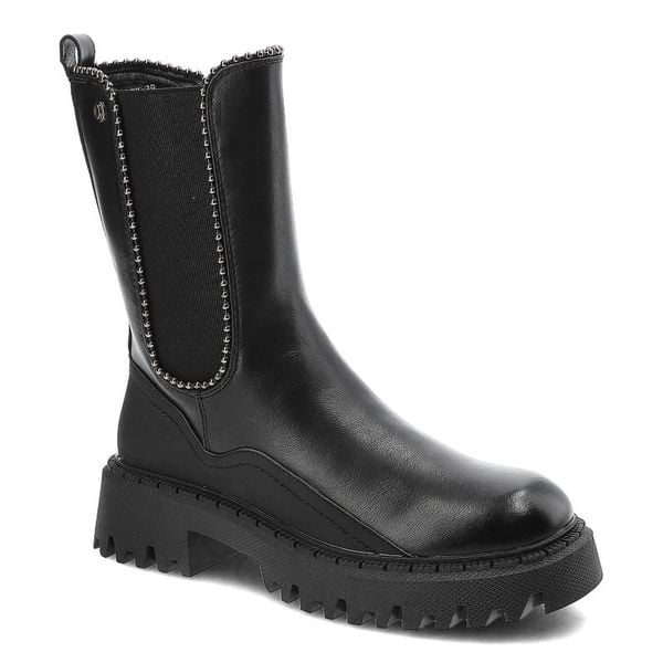 Botki damskie Filippo, ze skóry naturalnej z elastycznymi wstawkami po bokach zapinane na suwak zabudowaną cholewką, czarne, DBT4009-22-BK