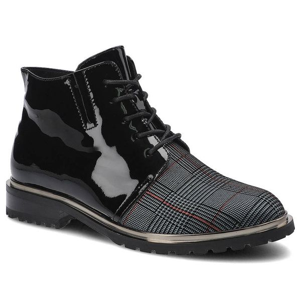 Botki damskie Artiker, naturalna skóra lakierowana z łączoną cholewką o eleganckim charakterze sznurowanym zapięciem oraz stabilną podeszwą, czarne,
