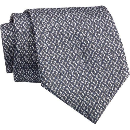 Krawat Klasyczny, Granatowo-Biały w Drobny Geometryczny Wzór, Szeroki 8 cm, Elegancki -CHATTIER