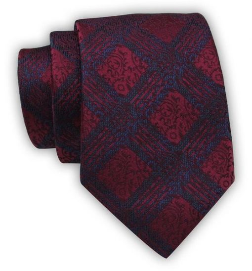 Krawat Alties (7 cm) – Ciemnoczerwony w Geometryczne Wzory