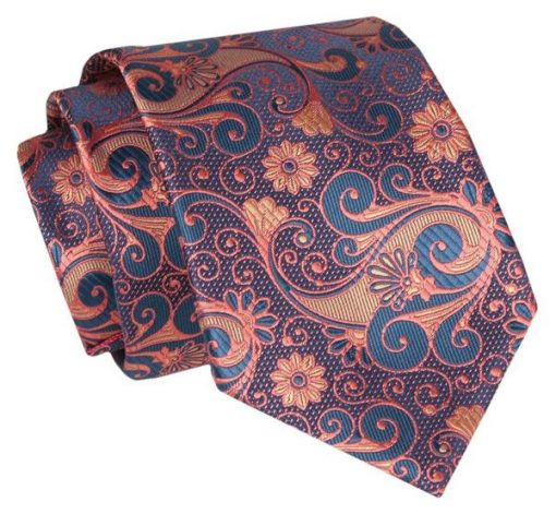 Męski Krawat – Odcienie Miedzi, Duży Wzór – Angelo di Monti
