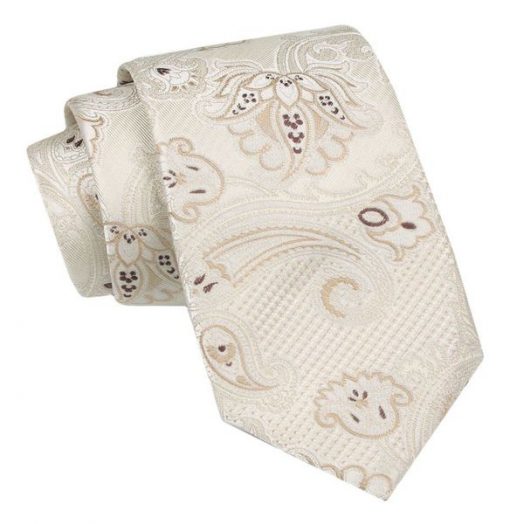 Klasyczny Męski Krawat – ALTIES – Jasny Beż, Kwiaty