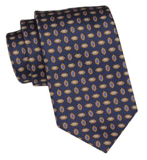 Klasyczny Krawat Męski – ALTIES – Granat, Złote Groszki