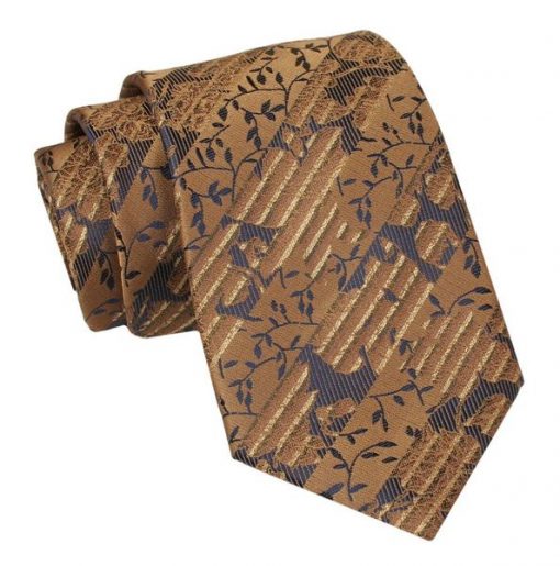 Krawat Męski, Klasyczny – ALTIES – Karmelowy, Kwiaty