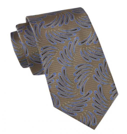 Modny Męski Krawat – Alties – Złoty w Niebieski Duży Wzór