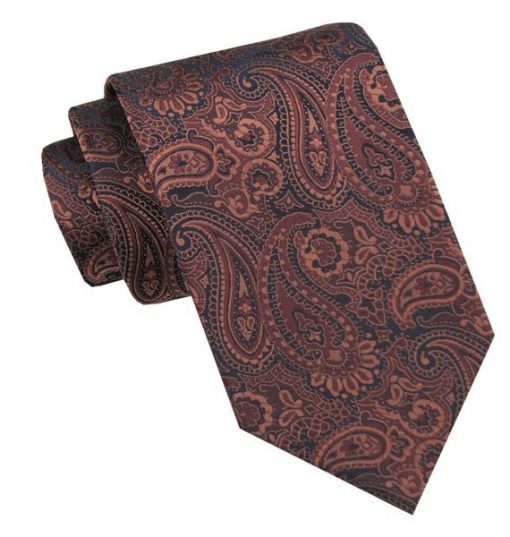 Klasyczny, Męski Krawat – Szeroki – Chattier – Kolor Ciemnomiedziany, Paisley