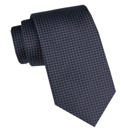 Elegancki i Modny Krawat Jedwabny – Alties – Granatowy w Drobną Kratkę