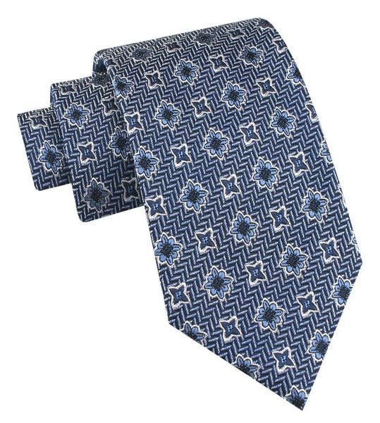 Jedwabny Krawat Męski – His Story – Niebieski z Wzorem w Kwiatki