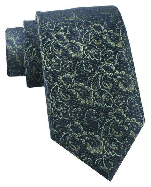 Klasyczny, Szeroki Krawat Męski CHATTIER - Odcienie Zieleni, Orientalny Wzór