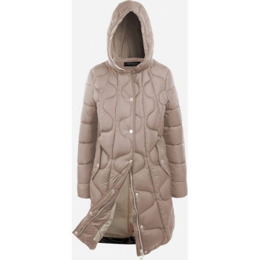 Kurtka Eedit zdobiona nieregularnym pikowaniem. O lekko przedłużonym kroju, zapinana z przodu na zamek błyskawiczny, ukryty pod plisą na napy. Kaptur nieodpinany, dodatkowo wokół szyi dwa zatrzaski. Po bokach kieszenie na zamki. Średnio ocieplana – świetnie się sprawdzi na okres jesienno-zimowy. Ciepła kurtka z pikowaniem wygląda rewelacyjnie w duecie z workerami.