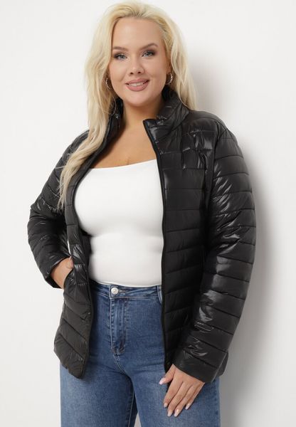 Czarna Pikowana Kurtka z Kołnierzem i Kieszeniami Senias