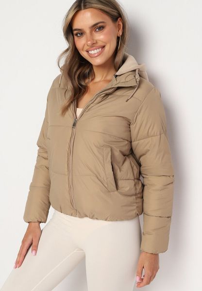 Ciemnobeżowa Pikowana Kurtka z Kapturem Mivuna