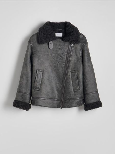 Kurtka o prostym kroju, wykonana z imitacji skóry.