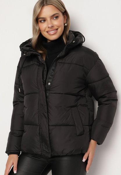 Czarna Pikowana Kurtka o Pudełkowym Kroju z Kapturem i Kieszeniami Alissan