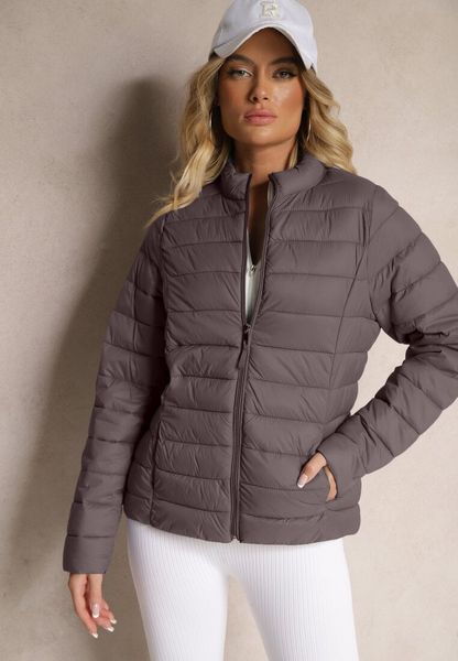 Ciemnoszara Casualowa Kurtka Ozdobiona Pikowaniem Nelionea