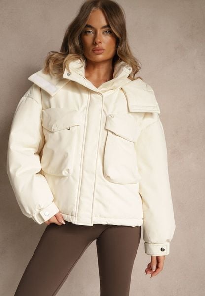 Beżowa Kurtka Bomberka o Kroju Oversize z Kapturem i Dużymi Kieszeniami Nalesia