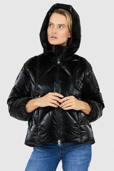 HETREGO Czarna błyszcząca kurtka damska z kapturem Muriel, Rozmiar 38 EU – 42 IT