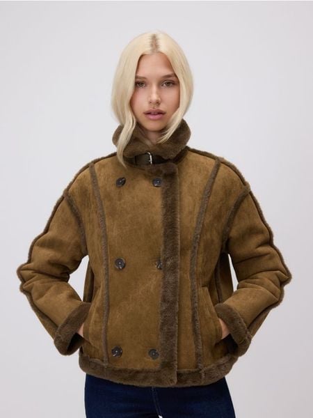 Kurtka o prostym kroju, wykonana z imitacji zamszu.