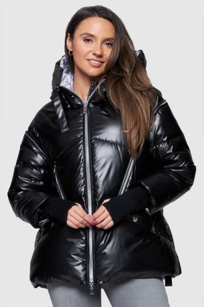 DIEGO M Czarna damska kurtka puchowa ze srebrnym zamkiem, Rozmiar 38 EU - 42 IT