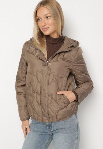 Brązowa Przejściowa Kurtka z Oryginalnym Pikowaniem i Kapturem Aruvitte