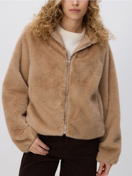 Kurtka o swobodnym kroju, wykonana ze sztucznego futra.