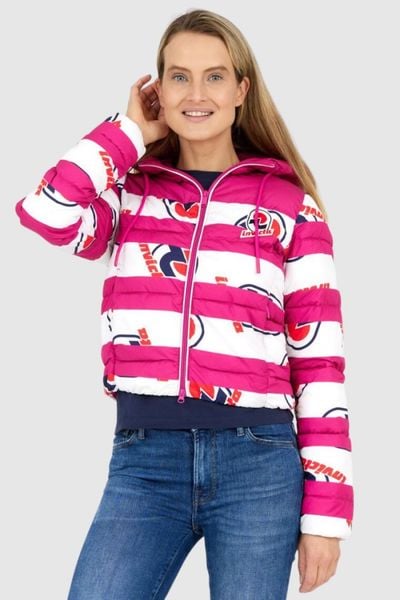 INVICTA Różowa kurtka damska w białe pasy i logo, Rozmiar M