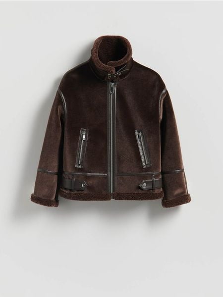 Kurtka o prostym kroju, wykonana z imitacji zamszu.
