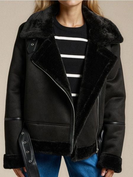 Sinsay – Kurtka ramoneska z kożuszkiem – czarny –