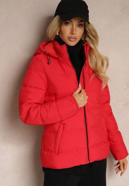 Czerwona Prosta Kurtka Pikowana z Kapturem z Możliwością Odpięcia Venilora