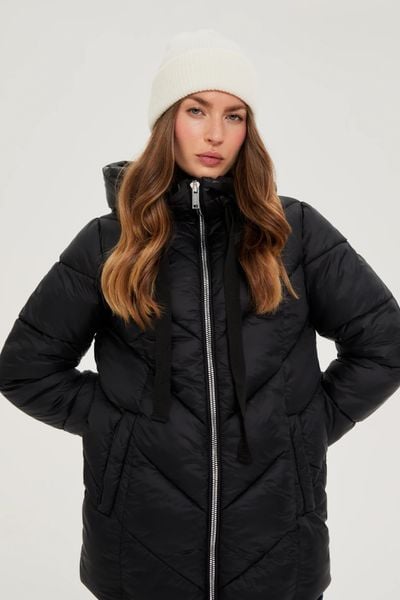 Pikowana kurtka z kapturem czarna