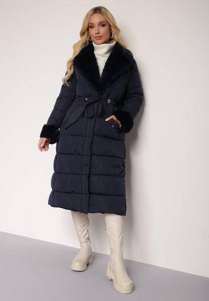 Kurtka Basice długa i pikowana. Z kołnierzem obszytym miękkim materiałem imitującym futerko. W pasie tunel z wszytym troczkiem do podkreślenia talii. Zapięcie na plisę z napami oraz schowany pod nią zamek błyskawiczny. Wyposażona w kieszenie zapinane na napy. Średnio ocieplana, z materiałową podszewką. Futerko przy kołnierzu oraz rękawach jest nieodpinane. Uzupełni stylizacje casualowe.