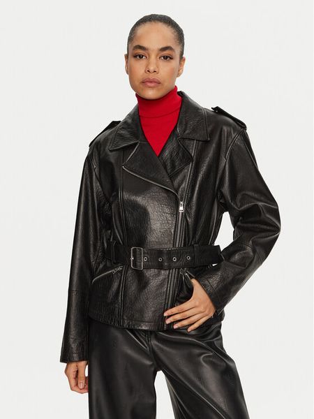 Hugo Kurtka skórzana Leraba 50522746 Czarny Relaxed Fit
