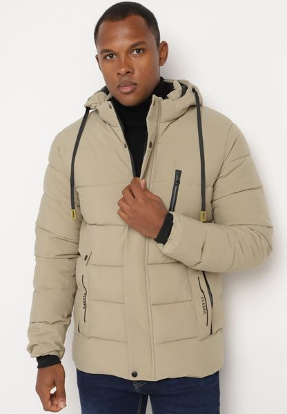 Ciemnobeżowa Pikowana Kurtka z Odpinanym Kapturem i Sznurkami Nomika