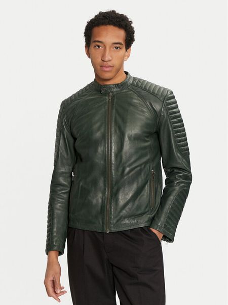 Serge Pariente Kurtka skórzana Leman 2 Zielony Slim Fit