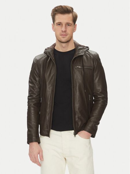 Serge Pariente Kurtka skórzana Ondo Brązowy Regular Fit