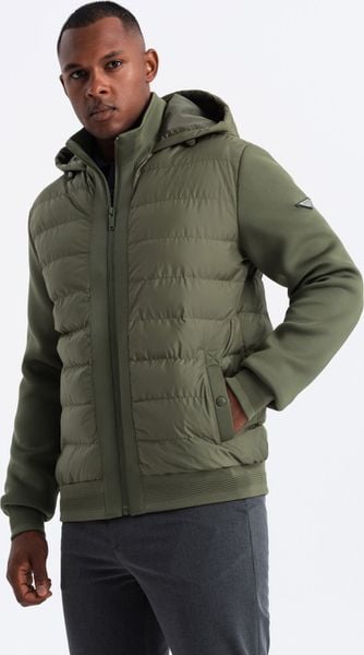 Kurtka męska Ombre Pikowana męska kurtka bomberka z wysokim kołnierzem ciemnooliwkowa V3 OM-JALP-0140 XXL