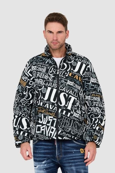 JUST CAVALLI Czarna męska kurtka Print Lettering, Rozmiar 48