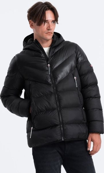 Kurtka męska Ombre Kurtka męska zimowa pikowana z łączonych materiałów – czarna V1 OM-JAHP-0145 L