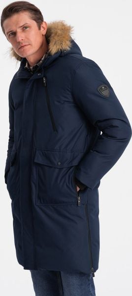 Kurtka męska Ombre Zimowa kurtka męska alaska z odpinanym futerkiem od kaptura – granatowa V1 OM-JALJ-0148 XL