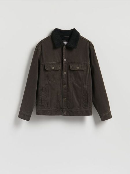 Kurtka typu sherpa o regularnym kroju, wykonana z denimu.