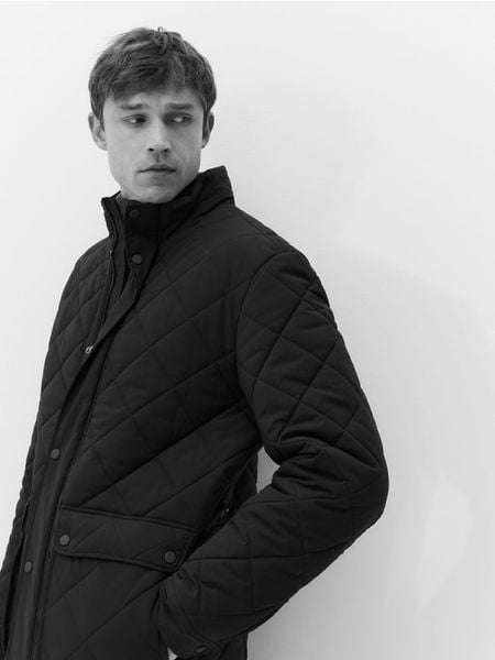 Pikowana kurtka ze stójką – ciemnobrązowy