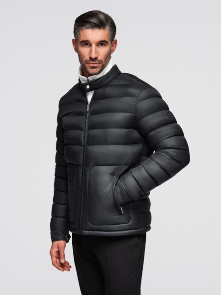 Pikowana klasyczna kurtka męska ze stójką – czarna V1 – Rozmiar: XXL