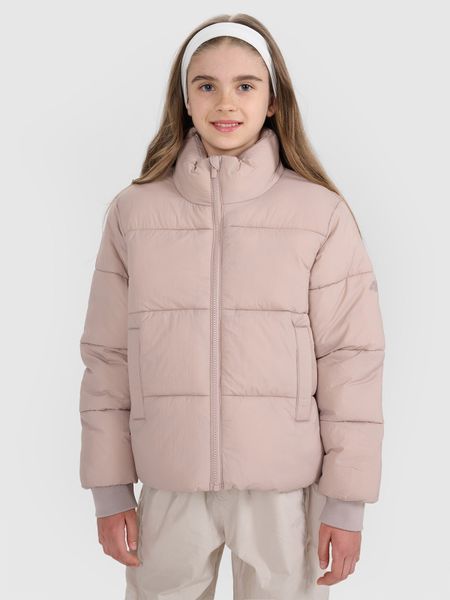4F Kurtka puchowa z wypełnieniem syntetycznym dziewczęca – brązowa 122 (6-7 lat)