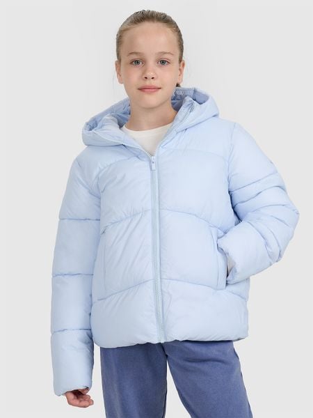4F Kurtka puchowa z wypełnieniem syntetycznym dziewczęca - niebieska 140 (9-10 lat)